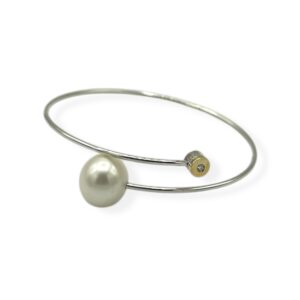Colgante rígido de plata de primera ley con chatón de oro de 9k, con brillante y perla australiana o cultivada.
