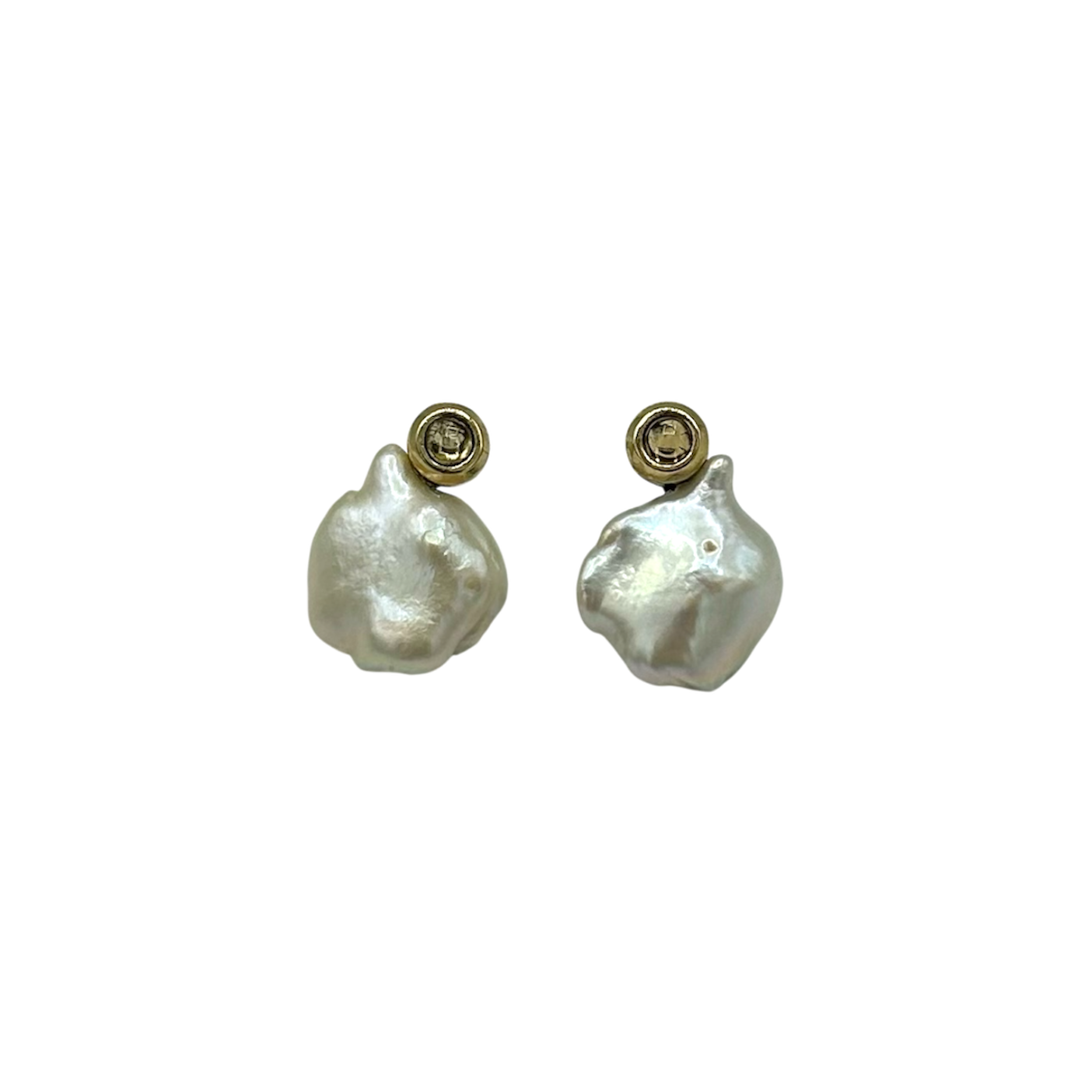 Pendiente de plata de primera ley con bisel de oro de 9k, turmalina y perla keshi.